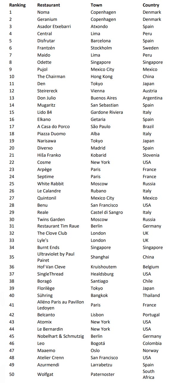 So landeten in diesem Jahr Restaurants aus 26 Ländern auf fünf Kontinenten auf der Liste, wobei Dänemark, insbesondere dessen Hauptstadt Kopenhagen, die Hauptrolle zu Teil wurde: Mit Platz eins und zwei, genauer gesagt dem Sieger Noma und dem zweitplatzierten Geranium, schreibt unser nördlicher Nachbar eine kulinarische Erfolgsgeschichte.