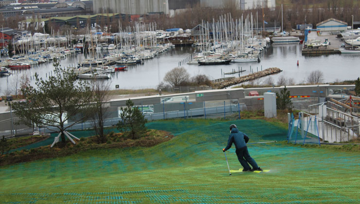 Möwen über dem Öresund, Industrieromantik statt Alpenglühen sowie Plastikmatten und Segelboote anstelle von schneebedecktem Gebirge. Wir holen den ausgefallenen Ski-Winter auf der Müllverbrennungsanlage CopenHill in Kopenhagen nach.