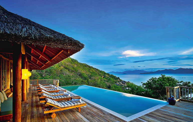 Das 5-Sterne-Luxus-Resort Six Senses Ninh Van Bay liegt am goldenen Strand der Bucht Ninh Van und ist nur mit dem Boot zu erreichen.