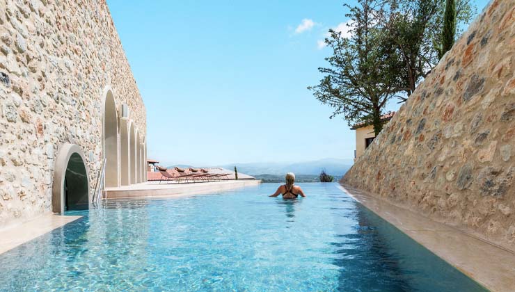 Gespannt bin ich deshalb auf meine nach Zen-Grundsätzen eingerichtete Suite. Auch die spektakuläre Architektur und die enorme Vielfalt des Spa-Bereichs erkunde ich direkt nach meiner Ankunft. Drumherum gibt es ebenfalls viel zu entdecken, liegt der edle Rückzugsort doch eingebettet in die malerischen Hänge des Taygetos-Gebirges, mit freiem Blick auf ein Tal voller Olivenhaine und das sagenumwobene Sparta. Eine Umgebung, die das Team nicht nur im Rahmen seines neuen Feel Alive Again-Programms gerne aktiv einbezieht, sondern auch bei anderen Treatments. Dank der kreativen, ganzheitlichen Methoden und der einnehmenden Coaches fühlen sich so auch all jene willkommen, die einfach nur abnehmen oder detoxen wollen, nach mehr Fitness streben, Stress abbauen möchten oder ganz allgemein auf der Suche nach mehr Balance in ihrem Leben sind.
