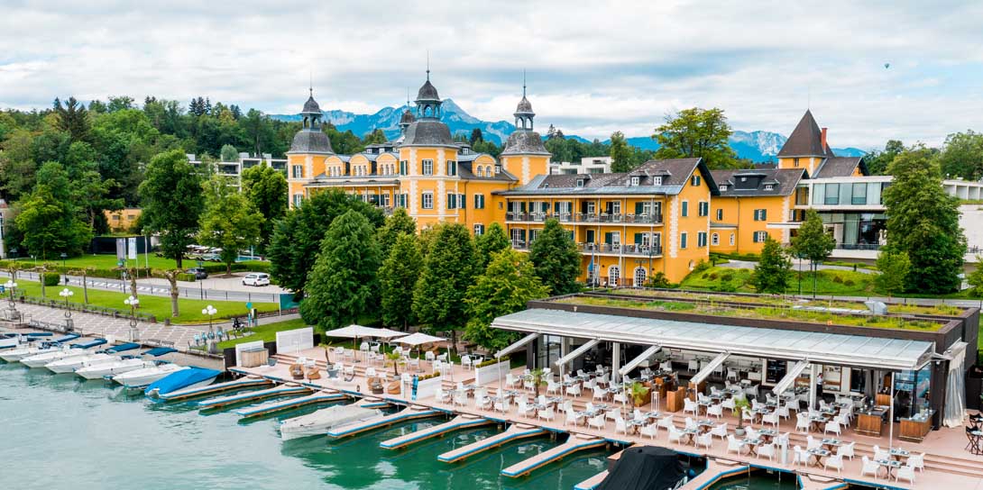 Schon in den 90er Jahren war das Hotel und der damalige Hauptdarsteller Roy Black durch die Fernsehserie „Ein Schloss am Wörthersee“, die in über 40 Ländern ausgestrahlt wurde, zu internationalem Ruhm gelangt und so mancher Fan möchte die Filmkulisse persönlich bestaunen, schließlich ist das Schlosshotel bis heute filmreif. Die sonnengelb gestrichenen Mauern, die dunkelgrünen Fensterläden und die mit bunten Blumen bepflanzten Balkons machen das traditionsreiche Haus zum prachtvollen Mittelpunkt am Westufer des Wörthersees.