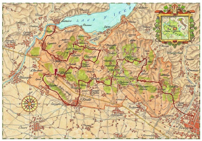 Die Entdeckungsreise zu dieser Preziose führt in die Lombardei, in die Gegend zwischen Brescia und dem Lago d’Iseo. Vorbei an der Südspitze des Gardasees in Richtung Mailand. Drei Ausfahrten führen nach Franciacorta: Palazzolo sull’Oglio, Rovato oder Ospitaletto. Unvermittelt taucht man in eine Welt voller Entspanntheit ein, durchfährt Hügelland, Weinberge und unverbaute Örtchen, die im Laufe der Jahrhunderte maßvoll gewachsen sind. Vorbei an Piazettas mit holprigen Pflastersteinen, an einem Meer von Rebstöcken, mittelalterlichen Burgen und Abteien, zinnengekrönten Türmen und Patriziervillen inmitten von Parkanlagen. Und: …. Keine Spur von Touristenbussen.