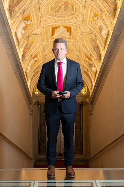 Mit seiner Ausstellung „La chiave della luce“ (Der Schlüssel des Lichts) thematisierte Saueressig aktuelle Themen von der Klimaveränderung und dem zunehmenden Datenmissbrauch bis hin zur Kirche und dem Glauben. „Glaube und Fortschritt waren schon für die alten Meister hier im Saal vor 500 Jahren das Thema. Das stellt die verbindende Komponente zwischen Ausstellung und Location, zwischen der Kunst von damals und jener von heute dar. Ein spannender Kontrast.“, so Saueressig, dessen innovative Kunstwerke vom 6. Februar – 7. März 2021 auch in der Kunsthalle Messmer in Riegel am Kaiserstuhl zu sehen sind.