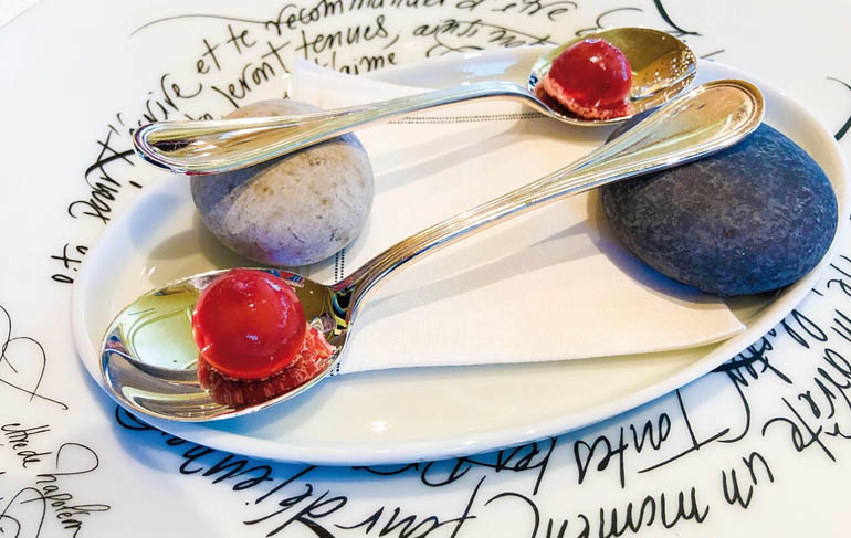 Auf den Platztellern, selbstverständlich eigens für das Restaurant entworfen, sind private Notizen des Feldherrn an seine Damen zu lesen. Das Hotel liegt zwar ideal, um die bekannten Champagnerhäuser ringsherum zu besichtigen, doch warum in die Ferne schweifen? Im Untergeschoss des Hauses lagern 280 außergewöhnliche Brut- und Rosé-Jahrgangs-Champagner und machen Lust und Laune mit Freunden, Bekannten und eventuell gerade anwesenden Winzern aus der Umgebung auf Champagner-Reise zu gehen. So einen Termin werden sie nicht mehr vergessen!
