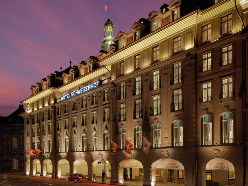 Das Hotel Schweizerhof Bern & Spa ermöglicht seinen Gästen schon seit 1859 einen unvergesslichen Aufenthalt mitten in der charmanten Hauptstadt der Schweiz. Das erste 5-Sterne Haus Berns ist bis heute auch das einzige mit einem urbanen Spa, in dem sich womöglich schon Sophia Loren erholte, nachdem sie auf einem der unvergesslichen Hausbälle die Nacht durchtanzte. Und sie befand sich hier in bester Gesellschaft, wie die Sitzgelegenheiten in Jack´s Brasserie verraten. Daran angebrachte Messingplaketten mit den Namen von Berühmtheiten wie Grace Kelly, Diego Maradona oder Sir Roger Moore verraten die Stammplätze der berühmten Gäste. Möglicherweise genossen auch sie das laut Gault&Millau hier servierte beste Wiener Schnitzel der Schweiz. Tatsächlich fanden im Schweizerhof Bern sogar Dreharbeiten für einen Bond-Film statt, allerdings mit George Lazenby, der den Doppel-Null-Agenten nur einmal mimte (Im Geheimdienst Ihrer Majestät). Eine Bond-Suite mit Hinweistafel vor der Tür zeugt heute von der cineastischen Historie, die sich hier abspielte, und auch im historischen Lift weht ein Hauch von Hollywood, entstanden selbst hier einige Szenen für den Streifen.