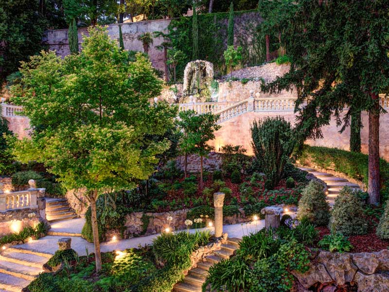 Wie eine Bühne unter freiem Himmel, deren Aufbau sich durch eine zentralperspektivische Achse und neoklassizistische Elemente wie Terrassen, Balustraden, Grotten, Springbrunnen und Statuen definiert. Das Zusammenspiel dieser Elemente, vom leisen Plätschern der Springbrunnen untermalt, schafft einen ganz eigenen Reiz und verzaubert heutige Gäste ebenso wie damalige – von Cocteau bis Stravinsky.