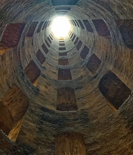 Am nächsten Morgen heißt es Abschied nehmen von der Perle der Toskana und so darf ich wagen, dem schönen Fräulein Arm und Geleit zur Weiterfahrt anzutragen. Nicht jedoch, ohne zuvor noch den Tipps des Concierge für die Weiterreise zu lauschen, denn auch für die nächste Etappe hat Signore Vannini den richtigen Tipp auf Lager. Er empfiehlt uns, auf dem Weg nach Rom einen Stopp in Orvieto einzulegen. Nicht nur, dass das beeindruckend auf einem Bergplateau gelegene Örtchen und Namensgeber der umliegenden Weinregion mittig zwischen den beiden Metropolen Florenz und Rom liegt. Es hat dazu auch noch einen pittoresken Stadtkern und Sehenswürdigkeiten wie den einzigartigen, begehbaren Brunnen „Pozzo di San Patrizio“ zu bieten.