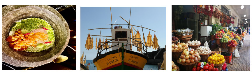 Am späten Nachmittag bietet sich eine kenntnisreiche Führung bei Blandy‘s samt Verkostung der berühmten Madeira-Weine an. So beschwingt, flaniert man die Rua de Santa Maria entlang, die eher Altstadtgasse als Straße ist. Sie verläuft parallel zur Promenade, vorbei an der einstigen Festung Fortaleza de Sao Tiago – heute ein Museum – und weiter oben zur Kirche Santa Maria Maior. An Gaumenfreuden hat Madeira Traditionelles wie zum Beispiel Stockfisch (Bacalhau) oder den Degenfisch Espada zu bieten, die sich auf den Speisekarten eher rustikaler Lokale wie auch in der gehobenen Gastronomie wiederfinden. Einen Rundum-Blick auf Atlantik und Stadt gibt es als Dreingabe zur feinen Küche des Restaurants im Nini Design Center am Hafen. Richtig trendig geht es im etwas versteckt liegenden Audax zu, in dem man mit einem lokal inspirierten, kreativ interpretierten Fünf-Gänge-Menü und edlen Tropfen aus der Region verwöhnt wird.