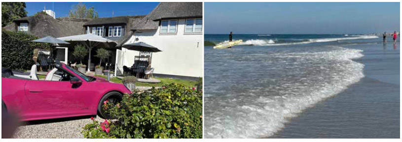 In optisch krassem Kontrast – aber ein MUSS wegen der überaus hohen Porsche Fahrzeugdichte auf der Insel – ein Besuch bei „Porsche auf Sylt“. Wer seinen eigenen Porsche zu Hause lässt, darf sich hier sein Wunschmodell anmieten und die Insel neu er-fahren und kann bei den Partnerhotels „vorfahren“.