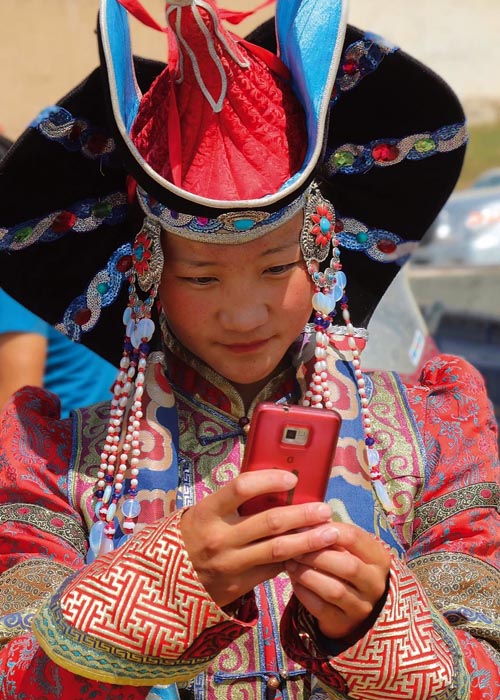 Gerade die jungen Mongolen zieht es weg von Kamelen, Pferden und Jurte-Hütten. Sie wollen in die Stadt, teilhaben am modernen Leben Ulaanbaatars – um jeden Preis auch dem der bisherigen unbezahlbaren grenzenlosen Freiheit. Die prächtige Nationaltracht, die schon die Kleinen tragen, der knöchellange Mantel „Deel“ mit aufknöpfbarem Brustlatz, Stehkragen und einem eng um die Taille gewickelten Stoffgürtel, wird eingetauscht gegen lässige Jeans und Baseball-Cap, Made in China, dem eigentlichen „Erzfeind“. Nur an besonderen Feiertagen wird voll Stolz der Deel aus dem Schrank geholt und die reich mit Ornamenten verzierten „Gutul“, die ledernen Reiterstiefel, angezogen. Mit dem Schlafen unter dem freien Himmel ist auch Schluss. Stattdessen funkeln nächtens die Discolichter und die Gesichter wirken im kalten Licht der Smartphones noch fremder. Viele studieren hier und „büffeln“ für ein besseres Leben, weit weg von ihren Eltern, die sie nur in den Ferien besuchen können. Andere machen „auf Business“. Die Mongolen besitzen riesige Kupfer-, Kohle- und Goldvorräte. Das ist Fluch und Segen zugleich wie bei der Oyu-Tolgoi-Mine zu beobachten, die als eine der größten Kupfer- und Gold-Förderstellen der Welt das Land in die Abhängigkeit des Nachbarn China und der Rohstoffbörsen in aller Welt zieht. Das Steppenland, das so reich wie Dubai sein könnte, verfügt über 2,1 Billionen US-Dollar an Rohstoffen. (Q.Welt.de, Stand 2014) Rechnerisch wäre, legt man die Boomjahre 2010-2014 zugrunde, jeder Mongole ein Fast-Millionär – rein theoretisch.