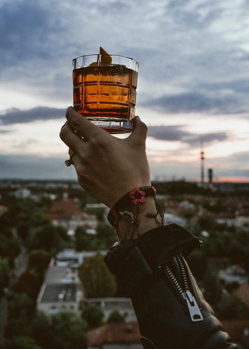 Standard Cocktails wie Old Fashioned oder Manhattan sucht man im M’Uniqo vergebens, zumindest auf der Karte. Freilich werden auch diese auf Nachfrage gemixt – darauf weist uns das versierte Personal gleich zu Beginn hin. Jedoch macht man uns die selbst entwickelten Signature Drinks, die hier gerne mit Wermuth oder Basilikumsorbet vom Patissier des Andaz Hotels überraschen, so schmackhaft, dass man keine Gedanken mehr an altbekanntes wie Pina Colada oder Long Island Ice Tea verschwendet. Zu den außergewöhnlichen Cocktails wird klassisches Barfood im #sharestyle serviert. Rauchige Wagyu Mini Burger, knusprige Garnelen-Papillote, leckere Trüffelpizza oder auch der M’Uniqo Platter mit einer köstlichen Auswahl an italienischen Käse- und Wurstspezialitäten lassen Foodie-Herzen hier oben höherschlagen.