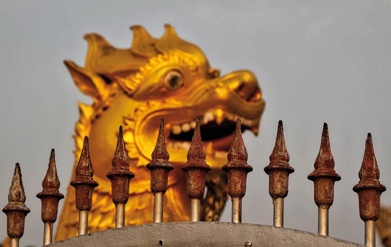 Schon aus der Ferne leuchten die Tempelanlagen von Bagan (Titelbild), der historischen Hauptstadt des einstigen Königreichs (1044 bis 1287). Eine Ballonfahrt – dabei lautlos über unzählige Pagoden und Stupas hinwegzugleiten – ist zweifelsohne das absolute Highlight einer