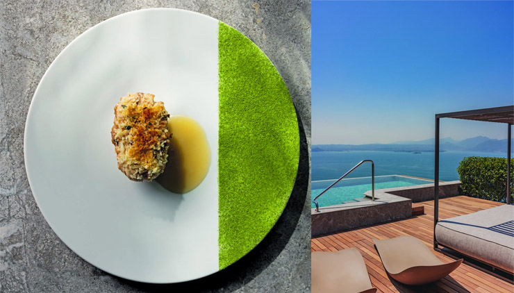 In Albisano in Torri del Benaco, an der östlichen Seite des Gardasees, erstreckt sich, mehr als 200 Meter hoch gelegen, das Adults-Only-Boutique-Hotel über drei Etagen. Vom Balkon oder der Terrasse der 55 Suiten sowie von der 15.000 Quadratmeter großen Gartenanlage aus hat man einen grandiosen 180-Grad-Blick über den See. Die vier Sky-Suiten verfügen über eine 70 Quadratmeter große Terrasse, die mit einem privaten Whirlpool und einem Gazebo-Sternenzelt ausgestattet sind, so dass die Gäste hier (auch) unterm Sternenhimmel schlafen können. Bei drei Tagen Mindestaufenthalt bleibt somit ausreichend Zeit und Muße, Körper und Seele mal so richtig zu entspannen.