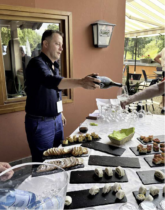 Am Samstag die dritte Ausfahrt, Frühstück ab 07:30 Uhr, Briefing und dann Start um 08:45 Uhr. Das erste Ziel: auf vielen „Umwegen“, engen kurvigen Straßen in Richtung Madonna di Campiglio. Der obligatorische Aperitif-Treff am Hotel Casa del Campo. Die Lage: Für Wintersportler im Skirama Dolomiti Adamello Brenta und für uns Golfer in der Nähe des Golfplatzes, also zu jeder Jahreszeit ein gefragter Urlaubsort. Auf der SS43 ging es weiter „kreuz und quer“ in Richtung Tonalepass nach Tassullo und Sanzeno. Nach etwa 02:12 Std. (so das Roadbook*) wieder im GC Dolomiten angekommen, gab‘s ein deftiges Schinken-/Käsebuffet, natürlich Spaghetti und guten Südtiroler Wein. Natürlich nur für die, die im Porsche rechts saßen ;-).