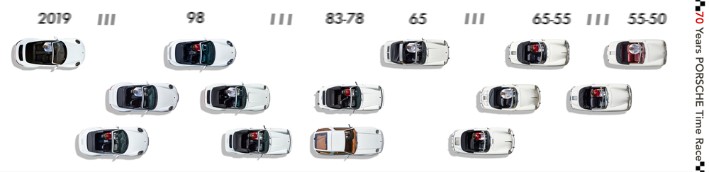 Weiß bietet einfach den Vorteil, dass man die Form und die Konturen am besten erkennen kann – auch wenn sich das Porsche Weiß im Laufe der Zeit auch ein wenig geändert hat und generell von einem warmen zu einem eher kühleren Weiß wurde – auch wenn man natürlich heute auch unterschiedliche Weißtöne ordern kann. Gerade in Hinsicht auf die Formen-Evolution bei Porsche bietet diese Farbe also am meisten. Nehmen wir die Scheinwerfer, die bei den alten Modellen noch senkrecht stehen, im Laufe der Zeit aus aerodynamischen Gründen aber immer flacher gelegt wurden und auch die Kotflügel immer mehr mit der Motorhaube verschwimmen. Und meine weiße Flotte hat noch einen weiteren tollen Vorteil: Einmal im Jahr sollen alle Fahrzeuge auch mal auf die Straße und wir machen eine Tour. Das ist natürlich ein Hingucker, wenn 14 verschiedene Porsche Modelle ganz in Weiß unterwegs sind.