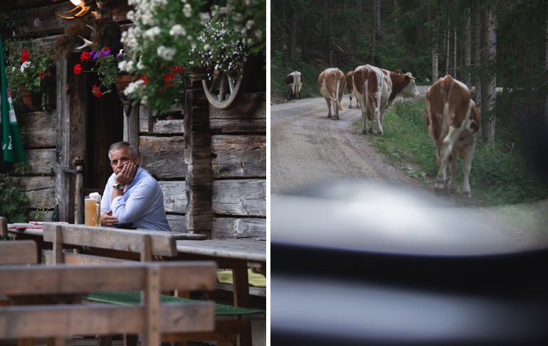 Über das Auto kommen wir sofort mit den Besitzern der Berghütte ins Gespräch. Wenngleich sie uns davon abraten, die letzten 400 Höhenmeter zu nehmen, lässt sich Michael später nicht von dieser Idee abbringen – ich wäre wahrscheinlich schon längst umgekehrt. So bewegen wir uns über enge Serpentinen hinauf, an freilaufenden Kühen vorbei bis kurz vor den Gipfel der steirischen Kalkspitze und werden mit einer gigantischen Aussicht belohnt. Meistens lohnt es sich eben, die Extra-Meile zu fahren, man kommt garantiert mit eindrucksvollen Fotos und noch besseren Erinnerungen nach Hause zurück.“
