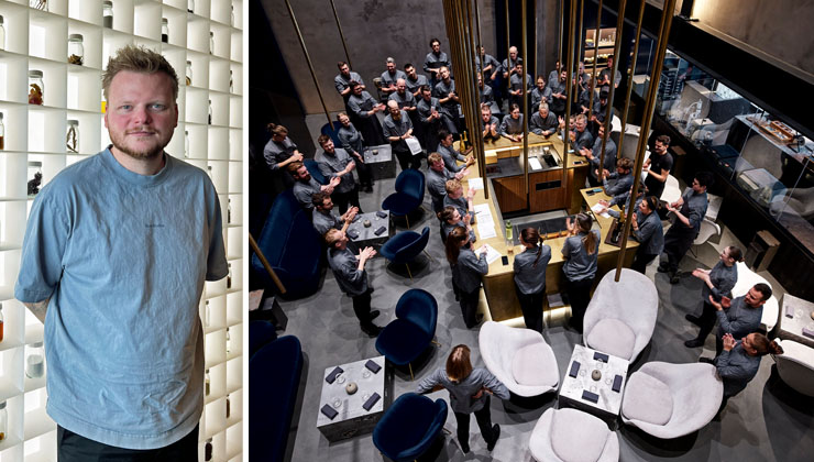 Langsam öffnet sich die massive Bronzetür der alten Werfthalle im Kopenhagener Hafen, schluckt nacheinander uns und die anderen glücklichen Gäste, die einen der 48 begehrten Plätze im Alchemist ergattern konnten. Mehrere hundert stehen hier täglich auf der Warteliste, wollen erfahren, welches Universum sich hinter der geheimnisvollen Tür verbirgt und was Rasmus Munk, 32, auftischt. So viel sei verraten: Uns erwartet ein einzigartiges Kulinarik-Spektakel, das alle Sinne anspricht. Ein Gourmet-Drama inszeniert in fünf Akten, die sich in verschiedenen Räumen auf über 2.000 Quadratmetern abspielen, mit eindringlichen Botschaften garniert und mit Videokunst, unterschiedlichen Temperaturen, Sounddesign und Musik choreografiert.