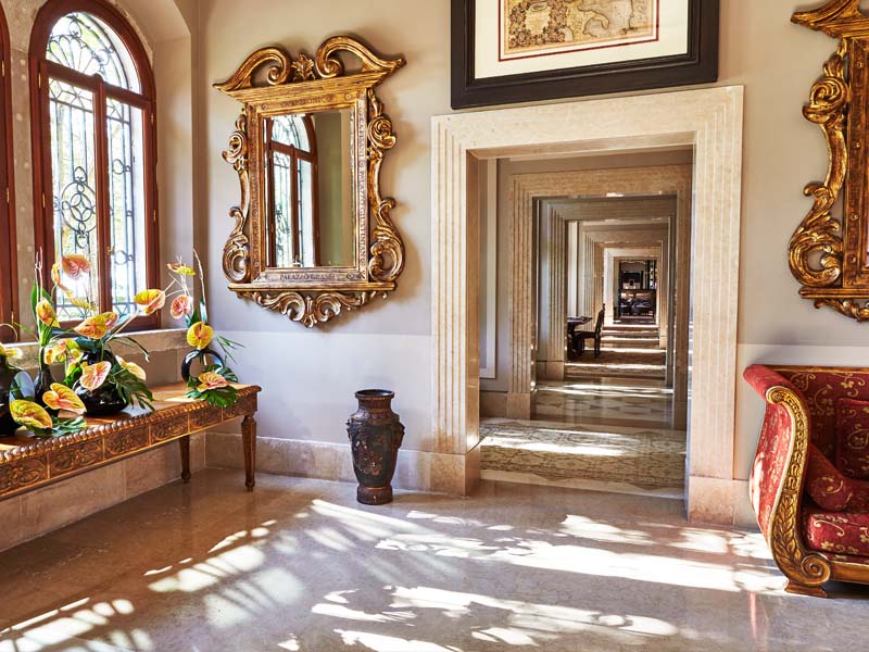 Das frühere Kloster gleich nebenan, das heute alles andere als karg daherkommt, beherbergt nun Luxusliebhaber aus aller Welt, die nach einem anregenden Tag in der berauschenden Lagunenstadt eine Oase der Ruhe und Erholung suchen. Die Wände der erhabenen Gänge sind marmorverziert und mit schillernden Stofftapeten veredelt. Dazu passende, ausladende Sessel, prächtige Kronleuchter, wertvolle Kunst und imposante Blumenarrangements schmücken die breiten Flure prunkvoll.