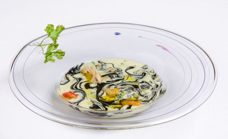Für die Küche zeichnet der jüngere der Brüder verantwortlich. Massimiliano, kurz Max genannt, sorgt dabei auch auf der Speisekarte für frischen Wind an diesem so traditionsreichen Ort. Mit seinen Küchenchefs Silvio Giavedoni und Sergio Preziosa serviert er moderne Interpretationen traditioneller venezianischer Gerichte, manche so bunt wie das berühmte Murano-Glas von Venedigs Nachbarinsel, andere vergoldet wie der Wandschmuck. Zwei Degustations-Menüs werden angeboten, beide mit den besten Produkten aus der Region zubereitet, die keinen langen Weg hinter sich haben.