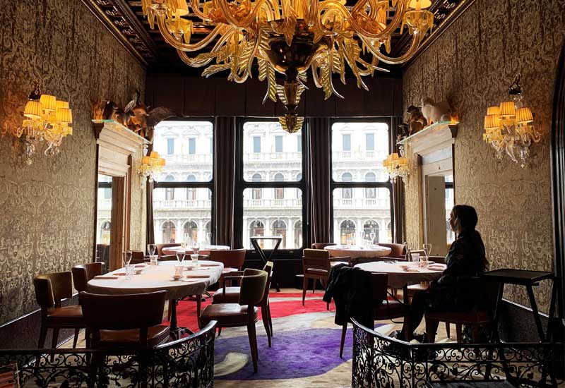 Das einzige Restaurant am Piazza San Marco ist im ersten Stock des Gran Caffe Quadri von 1775 beheimatet und passt hervorragend in die außergewöhnliche Restaurant-Kollektion der Alajmo Familie. Spitzenkoch Massimiliano Alajmo und sein Bruder Raffaele – Sie ahnen bereits, dass es sich bei den beiden um die zwei von der Tapete handelt – führten bereits das familieneigene Restaurant „La Calendre“ im nahegelegenen Padua zu drei Michelin Sternen. Ihr kulinarisch-künstlerisches Konzept bescherte nun auch dem Quadri den ersten Stern – über kurz oder lang, geht es nach den Alajmo-Brüdern, soll es eines der besten Restaurants der Welt werden.