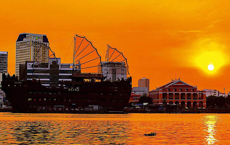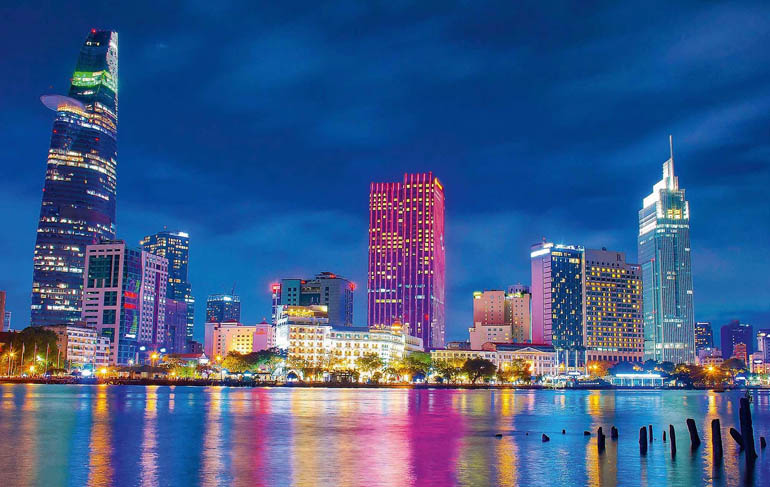 Vietnam Airlines fliegt aktuell viermal wöchentlich in circa zwölf Stunden direkt von Frankfurt nach Ho Chi Minh Stadt, ehemals Saigon. Die modernen B787 sind sehr klimaeffizient mit viel Beinfreiheit und bieten einen hervorragenden Service sowie liebevolle Betreuung durch sehr freundliches Personal. Schon der Anflug ist eine Überraschung. Saigon erstreckt sich über eine riesige Fläche von über 2.000 qkm und ist eine boomende Megacity mit riesigen Wolkenkratzern und einer offiziellen Einwohnerzahl von ca. 8,5 Mio., die inoffiziell weit höher liegt.