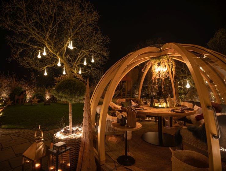 Die verglasten Iglus auf dem winterlich geschmückten Hofgut Dagobertshausen vor den Toren Marburgs garantieren derzeit ein Dinnererlebnis der besonderen Art. Bis zu acht Personen genießen gemeinsam in einem von sechs urgemütlichen Iglus kulinarische Hochgenüsse in absoluter Privatatmosphäre und zauberhaftem Ambiente des Waldschlösschen-Gartens. Das kulinarische Konzept unterstreicht die wohlige Atmosphäre: Das Tischmenü wird in der Mitte der Iglus platziert und in geselliger Runde geteilt.