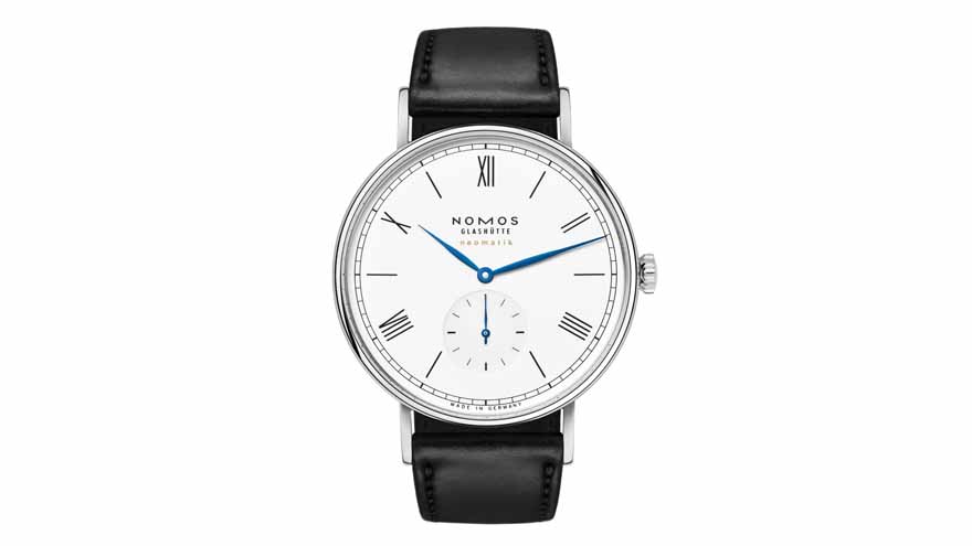 Wie also verhält es sich mit der mechanischen Uhr? Bei NOMOS Glashütte ist die Regel ganz einfach: Das Gewicht wie die Größe von Uhren sollten der Technik und dem Nutzen angemessen sein. Das mechanische Uhrwerk möglichst flach und elegant, das Gehäuse genau so dick, wie es der Einsatz der Uhr nahelegt – sportliche Uhren etwa sind robuster und schwerer als andere. Idealerweise sollte man die Uhr ein bisschen spüren, aber nicht im Sinne einer Last tragen. „Eine Uhr ist keine Hantel. Mit einer NOMOS-Uhr trägt man nur eine kleine Erinnerung an die Zeit am Handgelenk“, das sei alles, sagt Lennart Kluge, 34, Chef der Uhrenmontage bei NOMOS Glashütte.