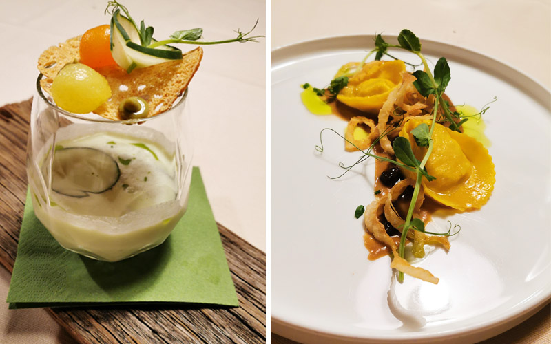 Apropos Korken, davon werden hier natürlich eine Menge gezogen. Nicht zuletzt bei einem herrlichen 5-Gänge-Menü, bei dem der Wein nicht nur der Protagonist im Glas, sondern zum Teil auch in den Gerichten auf dem Teller zu finden ist. Stilecht wird die ein oder andere Leckerei hier und da auch auf Holz alter Weinfässer serviert.